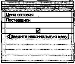 Текст, обращенный к пользователю, должен быть заключен в квадратные скобки. Если бы мы хотели отобрать процессоры, цена которых больше 100 единиц, мы бы написали: > 100. Если бы нам были нужны процессоры дешевле 80 единиц, мы бы написали < 80. Но если мы хотим дать пользователю возможность выбора, мы должны написать: < [Введите максимальную цену]. 7. Закройте запрос. При закрытии сохраните его под именем Выбор комплектующих. 8. В окне Комплектующие: база данных откройте панель Запросы и запустите запрос Выбор комплектующих — на экране появится диалоговое окно Введите значение параметра (рис. 13.19). 9. Введите какое-либо число и щелкните на кнопке ОК. В зависимости от того, что реально содержится в таблице Поставщики, по результатам запроса будет сформирована результирующая таблица. 10. Закройте все объекты базы данных. Закройте программу Microsoft Access.