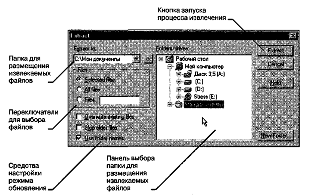 • какие файлы извлекать, а какие — нет; • в какую папку производить запись.