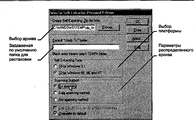 Рис. 14.7. Создание самораспаковывающегося архива