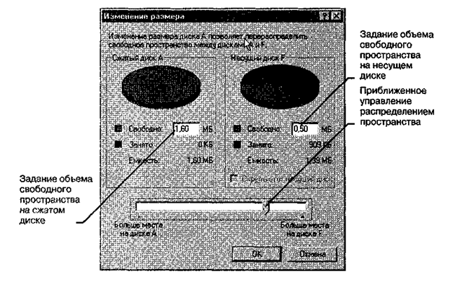 Рис. 14.11. Управление распределением пространства между сжатым и несущим дисками