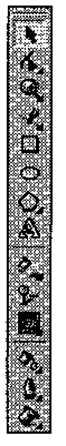 Панель инструментов расположена у левого края рабочего пространства и объединяет инструменты выбора объектов Pick Tool (Указатель), изменения формы Shape Tool (Фигура), масштабирования Zoom Tool (Масштаб), рисования линий BezierTool (Кривая Безье), рисования прямоугольников Rectangle Tool (Прямоугольник), рисования эллипсов Ellipse Tool (Эллипс), рисования многоугольников Polygon Tool (Многоугольник), работы с текстом Text Tool (Текст). Далее расположена группа интерактивных инструментов: Fill Tool (Интерактивный инструмент Заливка), управляющий способами заливки объектов; Transparency Tool (Интерактивная прозрачность), управляющий прозрачностью объектов; Blend Tool (Интерактивное перетекание), управляющий перетеканием объектов друг в друга с промежуточной трансформацией. Последними на панели размещены инструменты Eyedropper Tool (Пипетка), предназначенный для выбора цвета; Outline Tool (Абрис), управляющий параметрами контуров; Fill Tool (Заливка), управляющий параметрами заливки. Последний инструмент не следует путать с его интерактивным подобием—он выполняет несколько другие функции.