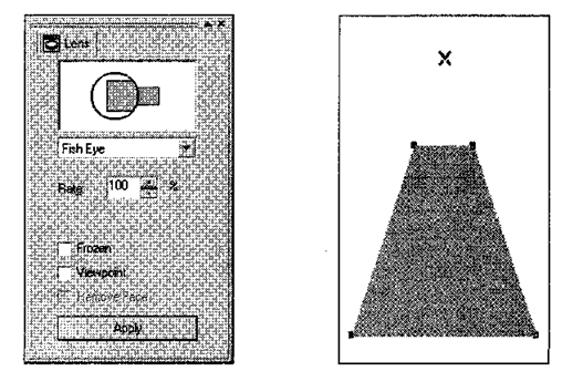Рис. 16.35. Стыкуемая палитра Lens Рис. 16.36. Моделирование перспективы