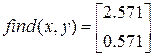 Уравнения и системы уравнений, возникающие в практических задачах, обычно можно решить только численно. Методы численного решения реализованы и в программе MathCad. Блок уравнений и неравенств, требующих решения, записывается после ключевого слова given (дано). При записи уравнений используется знак логического равенства (комбинация клавиш CTRL+=). Значения переменных, удовлетворяющие системе уравнений и неравенств, находятся с помощью стандартной функции find. given х – у = 2 sin(x)=sin(y)