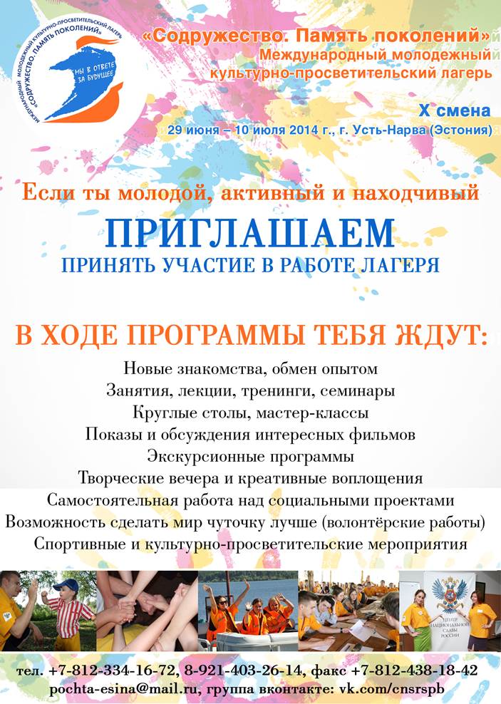 ЗАЯВКА на участие в Международном молодежном культурно- просветительном лагере «Содружество. Память поколений» (29 июня - 10 июля 2014 года, г. Нарва, Эстония)