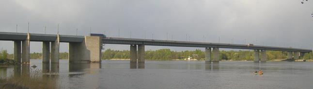 Рис.7.17. Общий вид моста через реку Волхов на обходе Новгорода с железобетонным коробчатым неразрезным пролетным строением и разбивкой на пролеты 36+63+84+84+63+36 м