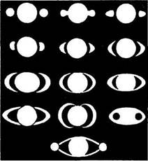 Если верно, что художник сильно зависит от собственных объект-гипотез, то что же происходит, когда он пытается изобразить совершенно незнакомый предмет? В поисках ответа следовало бы поставить эксперименты; однако некоторыми сведениями, проливающими свет на этот вопрос, мы уже располагаем. Речь идет о тех случаях в истории науки, когда внимательные и опытные наблюдатели старались описать и изобразить предметы, дотоле никогда не виданные человеком во всех деталях. Таких примеров немало, начиная с работ первых микроскопистов и астрономов, впервые применивших телескоп для наблюдения Луны и планет. Первые телескопические наблюдения провел Галилео Галилей (1564— 1642) между 1609 и 1619 годами; у него был примитивный рефрактор1 с апертурой в 2, 5 см. Галилея в высшей степени озадачил вид Сатурна. Мы-то прекрасно знакомы с кольцами планеты, они хорошо видны почти в любой современный телескоп; Галилей же не имел никакого представления об этом явлении и очень долго не мог разглядеть кольцо. Этот феномен он описал как «тройственный объект», когда же понял, что наблюдал кольцо, то своевременно не сообщил об этом. Голландский ученый Христиан Гюйгенс (1629—1695) строил собственные телескопы; по всей вероятности, они были лучше того, которым пользовался Галилей. Но и Гюйгенс не сумел правильно увидеть кольцо Сатурна. На рис. 6 показана серия рисунков, которыми Гюйгенс иллюстрировал свои наблюдения; фактически это изображения кольца, повернутого в разных ракурсах, но почти все они — невозможные варианты кольца. Впрочем, не следует забывать, что флуктуации изображения в телескопе, зависящие от атмосферных помех, могут порождать мимолетные искажения восприятия. И все же даже с учетом помех ошибки в первом, четвертом, десятом, одиннадцатом и тринадцатом рисунках вряд ли могли возникнуть объективно; их, безусловно, не сделал бы ни один из тех наблюдателей, которые знают «ответ». В конце концов, Гюйгенсу все же удалось прийти к правильному выводу: планета окружена «тонким, плос-