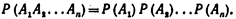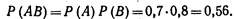 14. Понятие независимого события, теорема умножения для двух независимых событий, её условия и доказательство. Понятие попарно независимых и независимых в совокупности событий. Следствие из теоремы умножения для нескольких событий, независимых в совокупности, его доказательство, замечание следствия для нескольких противоположных событий. Примеры применения данной теоремы и её следствия. Пусть вероятность события В не зависит от появления события А. Событие В называют независимым от события А если условная вероятность события В равна его безусловной вероятности: т. е. вероятность совместного появления двух независимых событий равна произведению вероятностей этих событий. Два события называют независимыми(**), если вероятность их совмещения равна произведению вероятностей этих событий; в противном случае события называют зависимыми.. На практике о независимости событий заключают по смыслу задачи. Пример 1. Найти вероятность совместного поражения цели двумя орудиями, если вероятность поражения цели первым орудием (событие А) равна 0, 8, а вторым (событие В)— 0, 7.Решение. События А и В независимые, поэтому, по теореме умножения, искомая вероятность