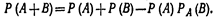 7. Понятие суммы и произведения двух и нескольких событий, иллюстрация суммы и произведения двух и трёх несовместных событий. Пример записи сложного события с помощью операций суммы и произведения простых событий. Четыре важных следствия понятий суммы и произведения событий, их иллюстрация. 8. Теорема сложения вероятностей для двух несовместных событий, её условия и доказательство, следствие для нескольких попарно несовместных событий – его доказательство. Примеры применения данной теоремы для двух событий. 9. Теорема сложения вероятностей событий, образующих полную группу – её условия и доказательство, пример её применения. 10. Понятие противоположных событий, теорема сложения вероятностей противоположных событий, её доказательство, два замечания данной теоремы. Примеры применения данной теоремы и её замечаний. 11. Принцип практической невозможности маловероятных событий, понятие уровня значимости, интервалы их значений, следствие данного принципа. 12. Понятие зависимого и независимого события, их примеры. Понятия условной вероятности события, варианты её записи, примеры её вычисления. Общая формула вычисления условной вероятности. Событие А называется независимым от события В, если вероятность события А не зависит от того, произошло событие В или нет.Событие А называется зависимым от события В, если вероятность события А меняется в зависимости от того, произошло событие В или нет.Рассмотрим примеры. 1) Опыт состоит в бросании двух монет; рассматриваются события: А — появление герба на первой монете, В — появление герба на второй монете.В данном случае вероятность события А не зависит от того, произошло событие В или нет; событие А н е з а в и с и м о от события В. 2) В урне два белых шара и один черный; два лица вынимают из урны по одному шару; рассматриваются события: А—появление белого шара у 1-го лица, В — появление белого шара у 2-го лица. Вероятность события А до того, как известно что-либо о событии В, равна 2/3. Если стало известно, что событие В произошло, то вероятность события А становится равной 1/2, из чего заключаем, что событие А зависит от события В. Вероятность события вычисленная при условии, что имело место другое событие В, называется условной вероятностью события А и обозначается Р(А/В) или РВ(А). Для условий последнего примера
