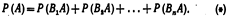 Искомая вероятность того, что при одном залпе хотя бы одно орудие даст попадание, равна 17. Теорема о формуле полной вероятности: её условие применения, словесная формулировка, математическая запись, её доказательство. Пусть событие А может наступить при условии появления одного из несовместных событий В1, В2, ..., Вn (гипотез), которые образуют полную группу. Пусть известны вероятности этих событий (Р(Вi) и условные вероятности РВ1(А), РВ2(А), … РВn(А) события А. Как найти вероятность события А?.Теорема. Вероятность события А, которое может наступить лишь при условии появления одного из несовместных событий B1 B2,..., Вп образующих полную группу, равна сумме произведений вероятностей каждого из этих событий на соответствующую условную вероятность события А:
