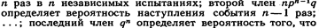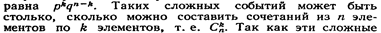 события несовместны, то по теореме сложения вероятностей несовместных событий искомая вероятность равна сумме вероятностей всех возможных сложных событий. Поскольку же вероятности всех этих сложных событий одинаковы, то искомая вероятность равна вероятности одного сложного события, умноженной на их число: или Искомая вероятность по формуле Бернулли равна