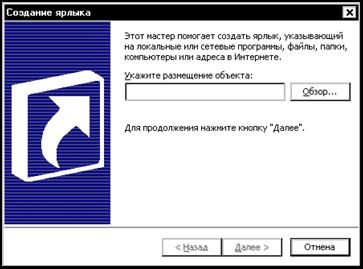 а б Рис. 2.9. Создание ярлыков: а – окно Мастера создания ярлыка; б – окно выбора размещения объекта