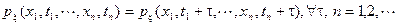 Другими словами, статистические (вероятностные) свойства стационарного случайного процесса не зависят от начала наблюдения. При n =1, из условия стационарности следует