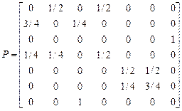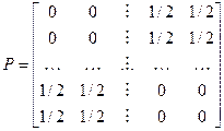 Рис. 3. Решение: Заметим, что здесь возвращение в каждое состояние возможно лишь за четное число шагов, переход в соседнее состояние – за нечетное число шагов, а матрица вероятностей переходов имеет блочную структуру: