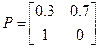 Решение: Данная цепь Маркова является неразложимой и апериодической, так как d (1)= d (2)=1. Кроме того, она имеет конечное число состояний, поэтому является эргодической. Матрица вероятностей переходов Составим систему уравнений для нахождения финальных вероятностей: