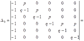Пример 2.7. Студент может перейти на следующий курс с вероятностью p, с вероятностью q может остаться на повторное обучение, а с вероятностью r может быть отчислен (p+q+r=1). Восстановление невозможно, но с вероятностью pможно вновь поступить на первый курс. Записать матрицу вероятностей переходов за один шаг и найти среднее время перехода в эргодическое множество. Решение: Будем считать, что образование занимает 5 лет, тогда состояния S 1, S 2, S 3, S 4, S 5– соответствуют обучению с первого по пятый курс, S 0, – абитуриент, S 6 – специалист. По определению S 0, S 1, S 2, S 3, S 4, S 5 – несущественные состояния, S 6 – эргодическое множество из одного состояния. Тогда матрица переходов за один шаг в каноническом виде может быть записана