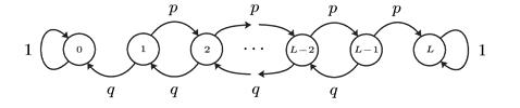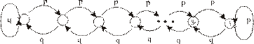 Рис. 4. 11. Цепь Маркова имеет множество допустимых состояний E={0, 1, 2, …, N} и описывается графом (рис.5), где 0< p< 1, q=1–p. Доказать, что цепь является эргодической, и найти стационарное распределение вероятностей.