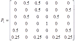 Провести классификацию состояний цепи Маркова и множества ее состояний, если выполняются равенства: а) б) в) 14. Цепь Маркова задана матрицей переходов за один шаг. Найдите финальные вероятности состояний цепи Маркова. a) в) 15. Найдите вероятность и условное, при условии попадания в Sk, среднее время перехода из несущественного состояния в замкнутый класс для цепи Маркова, заданных матрицей вероятностей переходов за один шаг. a) б) 16. Найдите вероятность и среднее время перехода из несущественного состояния в замкнутый класс для цепи Маркова, заданных графом вероятностей переходов за один шаг: