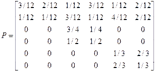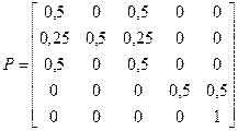 где mi (Sk/Hk) определяется аналогично mi (S) для цепи Маркова с единственным замкнутым классом состояний. Пример 2.8. Найдите вероятность и условное среднее время перехода из несущественного состояния в замкнутый класс для цепи Маркова, заданных матрицей переходов за один шаг систем