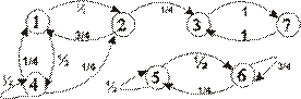 Найдите среднее время перехода внутри замкнутого класса. 17. Найдите вероятность и условное среднее время перехода из несущественного состояния в замкнутый класс для цепи Маркова, заданных графом вероятностей переходов за один шаг: