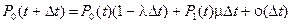 Пусть в начальный момент цепь Маркова находилась в состоянии 0, то есть P0(0)=P{x(0)=0}=1, P1(0)=P{x(0)=1}=0. Тогда решение системы дифференциальных уравнений принимает вид: