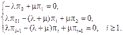 определяющую распределение вероятностей Pi (t) числа заявок в рассматриваемой СМО. Осуществив предельный переход t®¥, получим систему