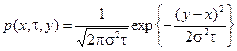 то есть вид характеристической функции нормального распределения с математическим ожиданием равным x и дисперсией равной s2t, следовательно, переходная плотность распределения вероятностей p (x, t, y) имеет вид