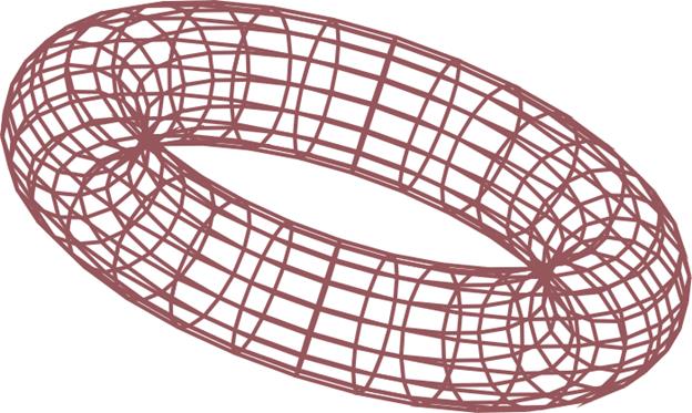 Торус. Геометрическая фигура в форме бублика, созданная вращением круга вокруг линии, расположенной в той же плоскости, не пересекающего ее. Является частью цветка жизни, присутствует в физике и астрономии (рис. 3.10).