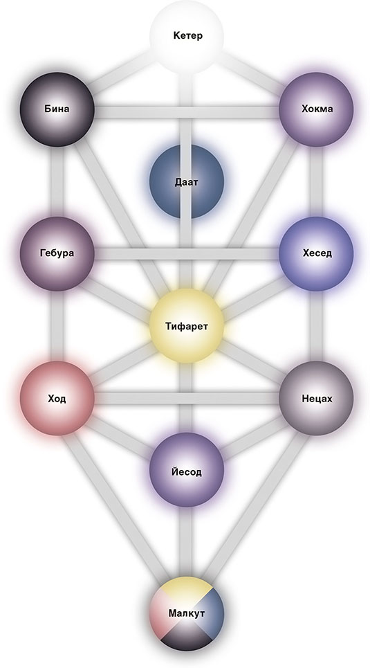 Сефироты могут быть описаны разными способами. Сефира является особым названием, отражающим главный принцип или энергию: название Бога, раскрывающее одну конкретную природу одного истинного Бога; архангел или ангелы, являющиеся охранниками прохода или проводниками в этой сфере; размещение по отношению к телу; порок или потенциальный дисбаланс, возникающий, если мы не полностью реализуем уроки сферы; добродетель или необходимое качество для полного воплощения в этой сфере; учение, представляющее мудрость, которую можно получить в этой сфере; Божественное тело; цвет (рис. 5.31).