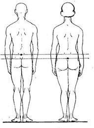Рис. Положение общего центра тяжести у двух мужчин, имеющих разное телосложение, но одинаковый рост.