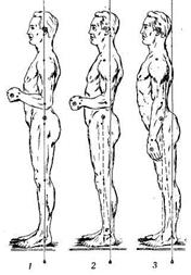 Симметричное стояние относится к неустойчивому виду равновесия. Степень устойчивости при движениях тела вперед и назад больше, чем при движениях в стороны (величина переднего и заднего углов устойчивости около 10 градусов, а правого и левого значительно меньше), в связи с чем возможность выполнения движения тела вперед и назад больше, чем в стороны. В зависимости от положения отдельных звеньев тела (туловища, головы, конечностей), а, следовательно, от того, как проходит вертикаль тяжести вышележащего звена по отношению к нижележащему, различают три вида положения стоя: § антропометрическое; § спокойное; § напряженное.
