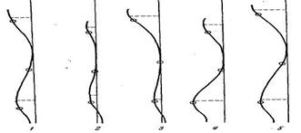 Рис. Типы осанки позвоночного столба: 1 — нормальная осанка; 2 — выпрямленная осанка; 3 — сутуловатая осанка; 4 — лордотическая осанка; 5 — кифотическая осанка. Кривая линия соответствует положению остистых отростков позвонков. Верхний кружок на каждой из линий обозначает положение остистого отростка седьмого шейного позвонка, средний кружок — положение уровня нижнего угла лопатки, нижний кружок — положение первого крестцового позвонка уменьшено в пять раз. Рисунки взяты из работы О. Н. Аксеновой. При очень хорошей осанке передняя поверхность грудной клетки несколько выступает вперед по сравнению с передней поверхностью живота (он как бы втянут) Хорошая осанка характеризуется тем, что передние поверхности груди и живота лежат в одной плоскости, голова немного наклонена вперед. При средней осанке передняя поверхность живота несколько выступает вперед по сравнению с передней поверхностью груди, поясничный лордоз увеличен, продольные оси нижних конечностей наклонены вперед. Плохая осанка характеризуется тем, что передняя поверхность живота сильно выдается вперед, грудная клетка уплощена, грудной кифоз и поясничный лордоз увеличены. Наиболее объективной классификацией осанки является классификация, предложенная Л.П. Николаевым, в основу которой положена выраженность изгибов позвоночного столба. По этой классификации различают пять типов осанки: § нормальную; § выпрямленную; § сутуловатую; § лордотическую; § кифотическую. При нормальной осанке величина изгибов позвоночника находится в пределах средних значений. При выпрямленной осанке позвоночный столб прямой, изгибы плохо выражены. Сутуловатая осанка характеризуется увеличенным шейным лордозом, в связи с чем голова несколько выдвинута вперед, грудной кифоз увеличен. Лордотическая осанка отличается сильно выраженным поясничным лордозом. При кифотической осанке резко увеличен грудной кифоз. О.Н. Аксенова кроме этих крайних типов выделяет еще промежуточные. Наличие искривлений позвоночника (сколиоза) легко обнаружить визуально по линии остистых отростков. Сутуловатость определяют по так называемому плечевому показателю, который представляет собой отношение ширины плеч к плечевой дуге, измеренной сзади между акромиальными точками (во избежание дробных величин его умножают на 100). Он особенно удобен при динамических наблюдениях. Уменьшение величины показателя указывает на сутуловатость. Асимметричность в расположении пояса верхней конечности можно определить антропометром по расположению правой и левой акромиальных точек над опорной поверхностью. Дефекты осанки довольно распространены, особенно среди детей школьного возраста. Так, А.Б. Гандельсман указывает, что 40, 9% школьников имеют сколиозы, 17, 8% - увеличенные кифозы и 23, 4% - плоскую спину. Большое значение в формировании осанки и в предупреждении возникновения ее дефектов имеют занятия физическими упражнениями. Однако и в процессе этих занятий необходим строгий контроль. Асимметричные движения в ряде видов спорта, усиленное развитие отдельных групп мышц без учета развития их антагонистов также могут привести к нарушению осанки. Задача тренера – не только исправлять имеющиеся дефекты осанки, но и предупреждать их. Из мышц туловища большое значение для формирования хорошей осанки имеют мышцы задн
