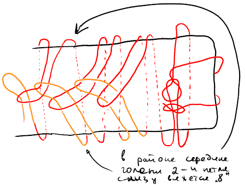 Шаг 11. Начинаем вязать систему поддержки головы. Сворачиваем излишки ковриков: