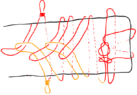 Шаг 8. Затем вяжем петли. Аккуратность вязки петель определяет надежность носилок, поэтому вяжем предельно аккуратно, не торопимся: