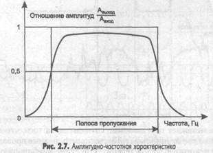 116 Глава 2 • Основы передачи дискретных данных ______________________________________________ Кроме искажений сигналов, вносимых внутренними физическими параметрами линии связи, существуют и внешние помехи, которые вносят свой вклад в искажение формы сигналов на выходе линии. Эти помехи создают различные электрические двигатели, электронные устройства, атмосферные явления и т. д. Несмотря на защитные меры, предпринимаемые разработчиками кабелей и усилительно-коммутирующей аппаратуры, полностью компенсировать влияние внешних помех не удается. Поэтому сигналы на выходе линии связи обычно имеют сложную форму (как это и показано на рис. 2.5), по которой иногда трудно понять, какая дискретная информация была подана на вход линии. Амплитудно-частотная характеристика, полоса пропускания и затухание Степень искажения синусоидальных сигналов линиями связи оценивается с помощью таких характеристик, как амплитудно-частотная характеристика, полоса пропускания и затухание на определенной частоте. Амплитудно-частотная характеристика (рис. 2.7) показывает, как затухает амплитуда синусоиды на выходе линии связи по сравнению с амплитудой на ее входе для всех возможных частот передаваемого сигнала. Вместо амплитуды в этой характеристике часто используют также такой параметр сигнала, как его мощность.