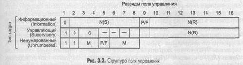Кадр LLC обрамляется двумя однобайтовыми полями «Флаг», имеющими значение 01111110. Флаги используются на уровне MAC для определения границ кадра LLC. В соответствии с многоуровневой структурой протоколов стандартов IEEE 802, кадр LLC вкладывается в кадр уровня MAC: кадр Ethernet, Token Ring, FDDI и т. д. При этом флаги кадра LLC отбрасываются. Кадр LLC содержит поле данных и заголовок, который состоит из трех полей: • адрес точки входа службы назначения (Destination Service Access Point, DSAP); • адрес точки входа службы источника (Source Service Access Point, SSAP); • управляющее поле (Control). Поле данных кадра LLC предназначено для передачи по сети пакетов протоколов вышележащих уровней — сетевых протоколов IP, IPX, AppleTalk, DECnet, в редких случаях — прикладных протоколов, когда те вкладывают свои сообщения непосредственно в кадры канального уровня. Поле данных может отсутствовать в управляющих кадрах и некоторых ненумерованных кадрах. Адресные поля DSAP и SSAP занимают по 1 байту. Они позволяют указать, какая служба верхнего уровня пересылает данные с помощью этого кадра. Программному обеспечению узлов сети при получении кадров канального уровня необходимо распознать, какой протокол вложил свой пакет в поле данных поступившего кадра, чтобы передать извлеченный из кадра пакет нужному протоколу верхнего уровня для последующей обработки. Для идентификации этих протоколов вводятся так называемые адреса точки входа службы (Service Access Point, SAP). Значения адресов SAP приписываются протоколам в соответствии со стандартом 802.2. Например, для протокола IP значение SAP равно 0x6, для протокола NetBIOS — OxFO. Для одних служб определена только одна точка входа и, соответственно, только один SAP, " а для других — несколько, когда адреса DSAP и SSAP совпадают. Например, если в кадре LLC значения DSAP и SSAP содержат код протокола IPX, то обмен кадрами осуществляется между двумя IPX-модулями, выполняющимися в разных узлах. Но в некоторых случаях в кадре LLC указываются различающиеся DSAP и SSAP. Это возможно только в тех случаях, когда служба имеет несколько адресов SAP, что может быть использовано протоколом узла отправителя в специальных целях, например для уведомления узла получателя о переходе протокола-отправителя в некоторый специфический режим работы. Этим свойством протокола LLC часто пользуется протокол NetBEUI. 3.2. Протокол LLC уровня управления логическим каналом (802.2) 191 Поле управления (1 или 2 байта) имеет сложную структуру при работе в режиме LLC2 и достаточно простую структуру при работе в режиме LLC1 (рис. 3.2).