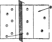 Рис. 106. Выход игрока к сетке нападающий удар. Переход игроков следующий: из зоны 5 игрок уходит в зону 1, из зоны 1 — в зону 2, из зон 3 и 4 — на место игрока, выполнявшего удар, последний же идет в зону 5.