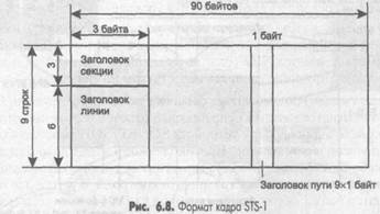 Тот же прием применяется для вставки или удаления пользовательских данных в потоке кадров STS-n. Пользовательские данные каналов типа Т1/Е1 или ТЗ/ЕЗ асинхронны по отношению к потоку байтов кадра STS-n. Мультиплексор формирует виртуальный контейнер и, пользуясь указателем HI, находит начало очередного поля данных. Затем мультиплексор анализирует заголовок пути и находит в нем указатель Н4, который описывает структуру содержащихся в кадре виртуальных контейнеров. Обнаружив свободный виртуальный контейнер нужного формата, например для 24 байт канала Т1, он вставляет эти байты в нужное место поля данных кадра STS-1. Аналогично производится поиск начала данных этого канала при выполнении операции удаления пользовательских данных. Таким образом, кадры STS-n всегда образуют синхронный поток байтов, но с помощью изменения значения соответствующего указателя можно вставить и извлечь из этого потока байты низкоскоростного канала, не выполняя полного демультиплексирования высокоскоростного канала. Виртуальные контейнеры также содержат дополнительную служебную информацию по отношению к данным пользовательского канала, который они переносят. Поэтому виртуальный контейнер для переноса данных канала Т1 требует скорости передачи данных не 1, 544 Мбит/с, а 1, 728 Мбит/с. В технологии SONET/SDH существует гибкая, но достаточно сложная схема использования поля данных кадров STS-n. Сложность этой схемы в том, что нуж- 6.2. Глобальные связи на основе выделенных линий 485 но «уложить» в кадр наиболее рациональным способом мозаику из виртуальных контейнеров разного уровня. Поэтому в технологии SONET/SDH стандартизовано шесть типов виртуальных контейнеров, которые хорошо сочетаются друг с другом при образовании кадра STS-n. Существует ряд правил, по которым контейнеры каждого вида могут образовывать группы контейнеров, а также входить в состав контейнеров более высокого уровня.