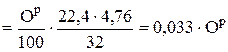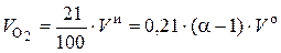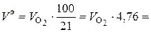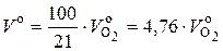 Из (6.12) эквивалентный объем воздуха рассчитывается исходя из содержания в воздухе 21 % кислорода по объему: