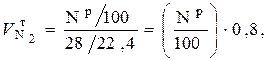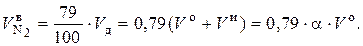 где Равенство (6.51) отражает тот очевидный факт, что приведенный объем О2 и часть от приведенного объема N2, относящаяся к избыточному воздуху, вместе как раз и составляют объем этого избыточного воздуха V и. Значение