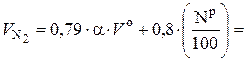 При полном сгорании любых органических топлив образуются следующие газообразные продукты сгорания: СО2, SО2 и Н2О. Если происходит неполное сгорание, то считается, что к трем названным продуктам добавляется окись углерода СО – токсичный газ, а также могут добавляться и другие газы. В общем случае объем продуктов сгорания 1 кг или 1 нм3 топлива V гскладывается из объема сухих газов V сги объема водяного пара V г= V сг + При этом:
