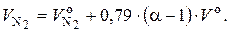 где 0, 79 · V о – приведенный объем N2 в теоретическом воздухе, нм3 / кг; 0, 79 · (α – 1) · V о – приведенный объем N2 в избыточном воздухе, нм3 / кг. Подставив в (6.53) формулу (6.52), получим: