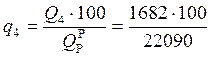 Составляющие теплового баланса: q 1 = q 2 = q 3 = q 4 = q 5 = q 6 = Величина невязки определяется по формуле (9.67): Δ Q НЕВ = + 2119 + 176 + 1682 + 137 + 103) = 22090 – 21899 = 191 кДж / кг. При этом невязка теплового баланса может быть определена и в % по выражению (9.68):