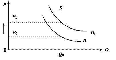 Нарешті, на протязі довгострокового ринкового періоду виробник, враховуючи зростання попиту на товар від D до D 1 може збільшити виробничі потужності і пропозиція S 1 наближається до абсолютно еластичної S 0 (рис. 6.7). Рисунок 6.7 – Довгостроковий ринковий період