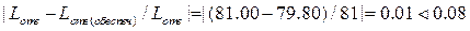 Как видно второй вариант обеспечивает необходимое отверстие моста, а первый вариант не обеспечивает. Это не означает, что от первого варианта, который может дать экономию в строительной стоимости, следует сразу же отказаться. Нужно выполнить проверку допустимости применения подобранной схемы моста для первого варианта по формуле отражающей требование: относительная разница между отверстием мота необходимым и Lотв и обеспеченным подобранной схемой Lотв(обеспеч) не должна превышать 8 %.