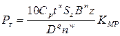 Значения коэффициентов и показателей степеней содержатся в литературе [2, с. 282…292]. Величины горизонтальной Ph, вертикальной Pv, радиальной Py, осевой Px составляющих устанавливают из соотношений с тангенциальной составляющей, приведенных в [2, с. 292].
