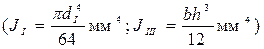 де Е - модуль пружності матеріалу (для алюмінієвих сплавів, Е=7000 кгс/мм2, для сірого чавуну Е=10000 кгс/мм2); FI і FII - площі поперечних перетинів брусків I і П; JI і JIII, - моменти інерцій брусків I і III.