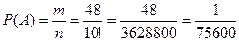 Образец решения лабораторной работы № 1 Слово составлено из карточек, на каждой из которых написана одна буква. Затем карточки перемешивают и вынимают без возврата по одной. Найти вероятность того, что буквы вынимаются в порядке слова «СТАТИСТИКА». Решение. Испытание заключается в вынимании карточек с буквами в следующем порядке без возврата. Элементарным событием является полученная последовательность букв. Событие А состоит в получении нужного слова СТАТИСТИКА. Элементарные события являются перестановками из 10 букв, значит n=10!. Некоторые буквы в слове повторяются, поэтому возможны перестановки, при которых слово не изменяется. Найдем это число. Буква «С» встречается в слове – 2 раза, «А» - 2, «Т» - 3, «И» - 2, «К» - 1. Т.о. Тогда, Ответ: