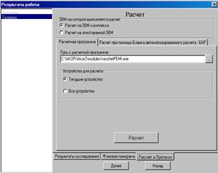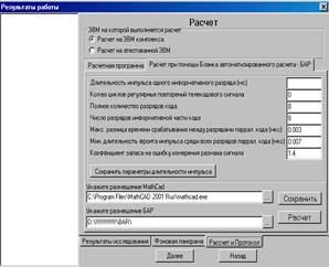 15.2. Розрахунок за допомогою БАР Розрахунок в " Бланку автоматизованого розрахунку (БАР)" вимагає наявності розрахункових файлів БАР і встановленої програми Mathcad 2000 Pro. Вам необхідно у вікні «Результати роботи» (рис. 18) обрати опцію «Розрахунок і протокол», а в сторіночці (рис. 22), що з’явилася, Вам необхідно обрати пункт «Розрахунок за допомогою Бланка автоматизованого розрахунку - БАР». Перевірити шляхи розміщення MathCad і розрахункових файлів, а так само ввести необхідні для розрахунку дані, а потім натискувати кнопку «Розрахунок». Програма автоматично запустить MathCad і передасть їй дані для дослідження.
