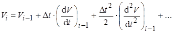 Таким образом, сущность метода Эйлера сводится к аппроксимации интегральной кривой v (t) последовательно сопряженными касательными, проведенными в точках, соответствующих началу каждого шага. Решение уравнения движения поезда разложением в ряд Тейлора. Как известно, функцию вида y = f (x) можно разложить в ряд Тейлора:
