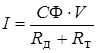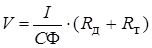 Как следует из формулы, ток в режиме реостатного торможения с самовозбуждением прямо пропорционален скорости движения. При скорости, равной нулю ток тоже должен быть равен нулю, однако так как двигатель возбуждается за счет остаточного магнитного потока, зависимости I = ¦(V) не проходят через начало координат. Положение точки пересечения характеристики с осью скорости определяется минимальной величиной скорости, при которой возможен процесс самовозбуждения для данной величины тормозного резистора. Запишем формулу для скорости движения: